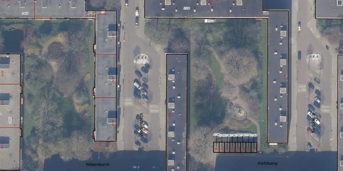 Het perceel waarop Wildenborch 13 staat heeft een oppervlakte van 1776 m². Dit is een zeer groot perceel. De perceeloppervlakte wordt geregistreerd door het Kadaster. Gedetailleerde informatie over de maten van dit perceel kunt u vinden in het rapport Kadastrale kaart met maatvoering van Wildenborch 13.