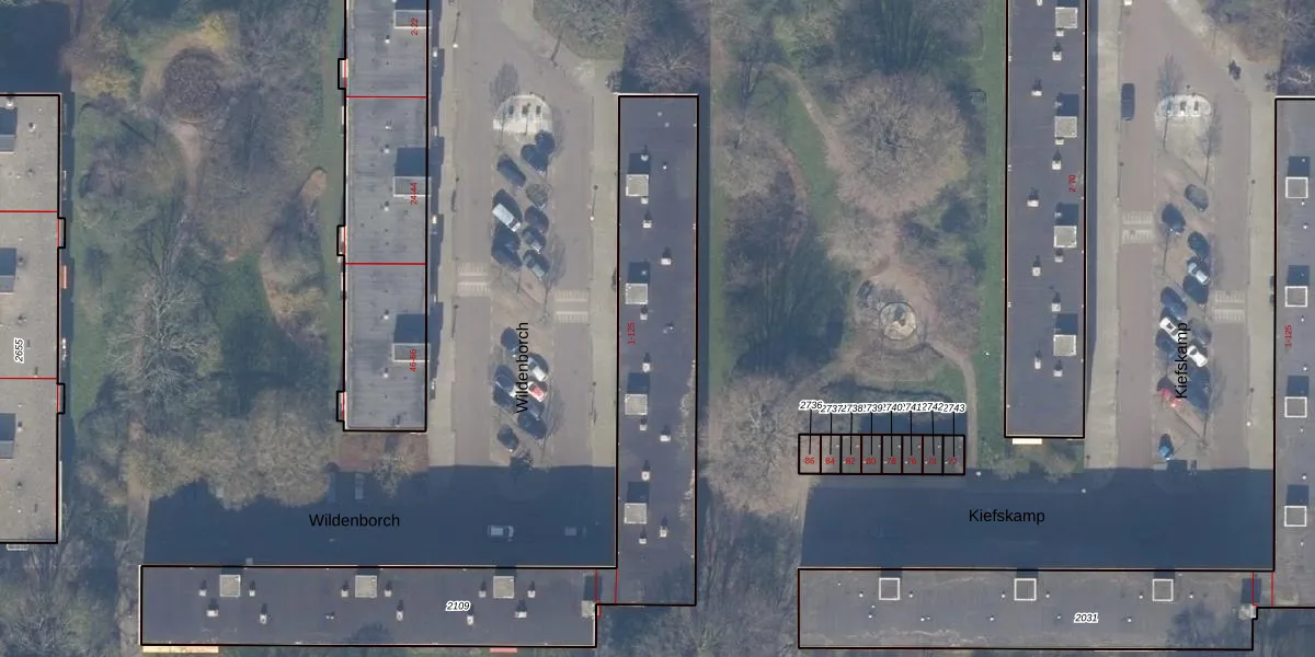 Het perceel waarop Wildenborch 31 staat heeft een oppervlakte van 1776 m². Dit is een zeer groot perceel. De perceeloppervlakte wordt geregistreerd door het Kadaster. Gedetailleerde informatie over de maten van dit perceel kunt u vinden in het rapport Kadastrale kaart met maatvoering van Wildenborch 31.