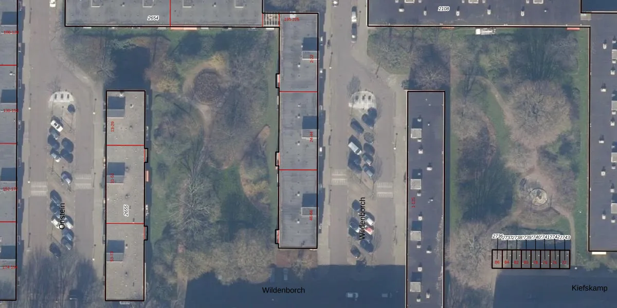 Het perceel waarop Wildenborch 42 staat heeft een oppervlakte van 1791 m². Dit is een zeer groot perceel. De perceeloppervlakte wordt geregistreerd door het Kadaster. Gedetailleerde informatie over de maten van dit perceel kunt u vinden in het rapport Kadastrale kaart met maatvoering van Wildenborch 42.