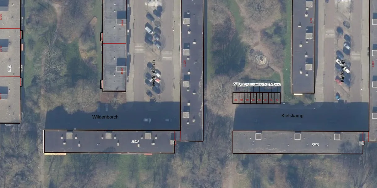 Het perceel waarop Wildenborch 45 staat heeft een oppervlakte van 1776 m². Dit is een zeer groot perceel. De perceeloppervlakte wordt geregistreerd door het Kadaster. Gedetailleerde informatie over de maten van dit perceel kunt u vinden in het rapport Kadastrale kaart met maatvoering van Wildenborch 45.
