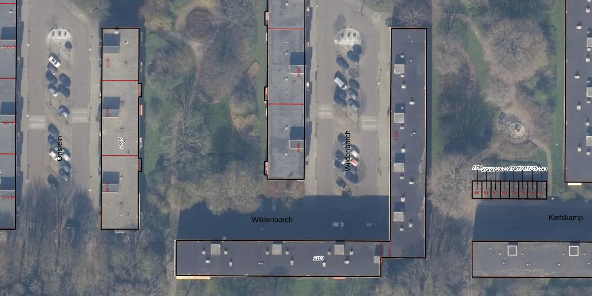 Het perceel waarop Wildenborch 50 staat heeft een oppervlakte van 1791 m². Dit is een zeer groot perceel. De perceeloppervlakte wordt geregistreerd door het Kadaster. Gedetailleerde informatie over de maten van dit perceel kunt u vinden in het rapport Kadastrale kaart met maatvoering van Wildenborch 50.