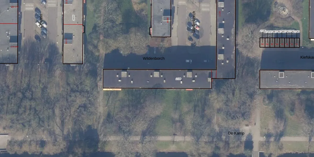 Het perceel waarop Wildenborch 95 staat heeft een oppervlakte van 1776 m². Dit is een zeer groot perceel. De perceeloppervlakte wordt geregistreerd door het Kadaster. Gedetailleerde informatie over de maten van dit perceel kunt u vinden in het rapport Kadastrale kaart met maatvoering van Wildenborch 95.