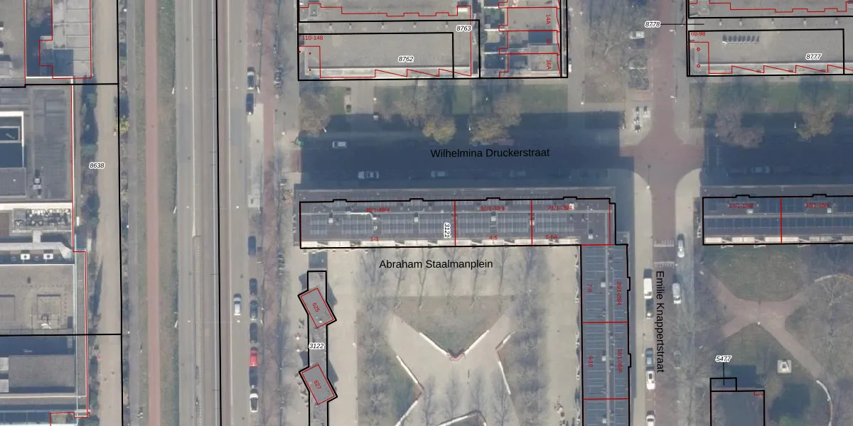 Het perceel waarop Wilhelmina Druckerstraat 39-3 staat heeft een oppervlakte van 1401 m². Dit is een zeer groot perceel. De perceeloppervlakte wordt geregistreerd door het Kadaster. Gedetailleerde informatie over de maten van dit perceel kunt u vinden in het rapport Kadastrale kaart met maatvoering van Wilhelmina Druckerstraat 39-3.