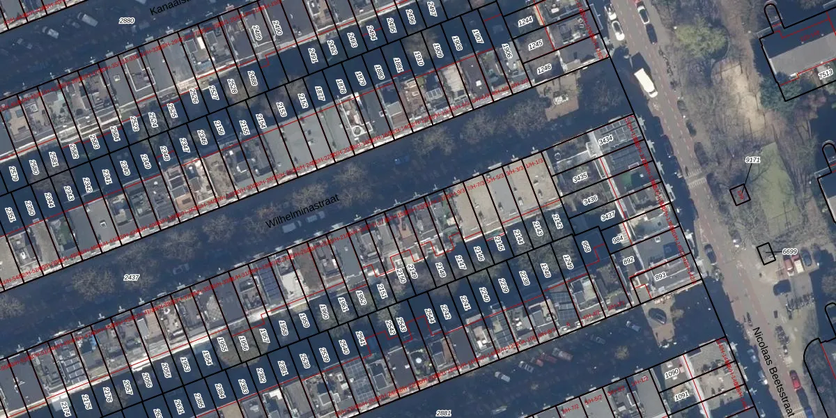 Het perceel waarop Wilhelminastraat 13-H staat heeft een oppervlakte van 108 m². Dit is een middelgroot perceel. De perceeloppervlakte wordt geregistreerd door het Kadaster. Gedetailleerde informatie over de maten van dit perceel kunt u vinden in het rapport Kadastrale kaart met maatvoering van Wilhelminastraat 13-H.