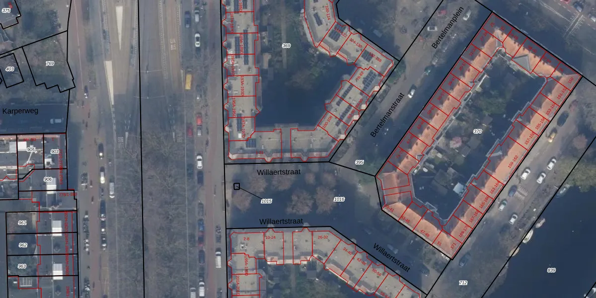 Willaertstraat 19 is gelegen op kadastraal perceel ASD24AC369. Deze kadastrale aanduiding is uniek en wordt gebruikt door het Kadaster om eigendomsrechten en andere zakelijke rechten vast te leggen. Het perceel maakt onderdeel uit van de kadastrale gemeente Amsterdam.