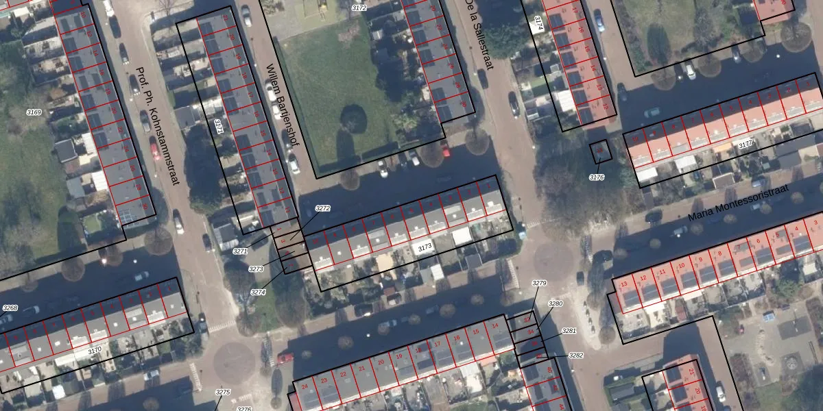 Het perceel waarop Willem Bartjenshof 5 staat heeft een oppervlakte van 677 m². Dit is een groot perceel. De perceeloppervlakte wordt geregistreerd door het Kadaster. Gedetailleerde informatie over de maten van dit perceel kunt u vinden in het rapport Kadastrale kaart met maatvoering van Willem Bartjenshof 5.