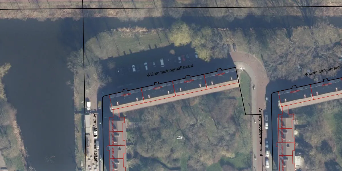 Willem Molengraaffstraat 21-M is gelegen op kadastraal perceel STN02D4280. Deze kadastrale aanduiding is uniek en wordt gebruikt door het Kadaster om eigendomsrechten en andere zakelijke rechten vast te leggen. Het perceel maakt onderdeel uit van de kadastrale gemeente Sloten Noord-Holland.