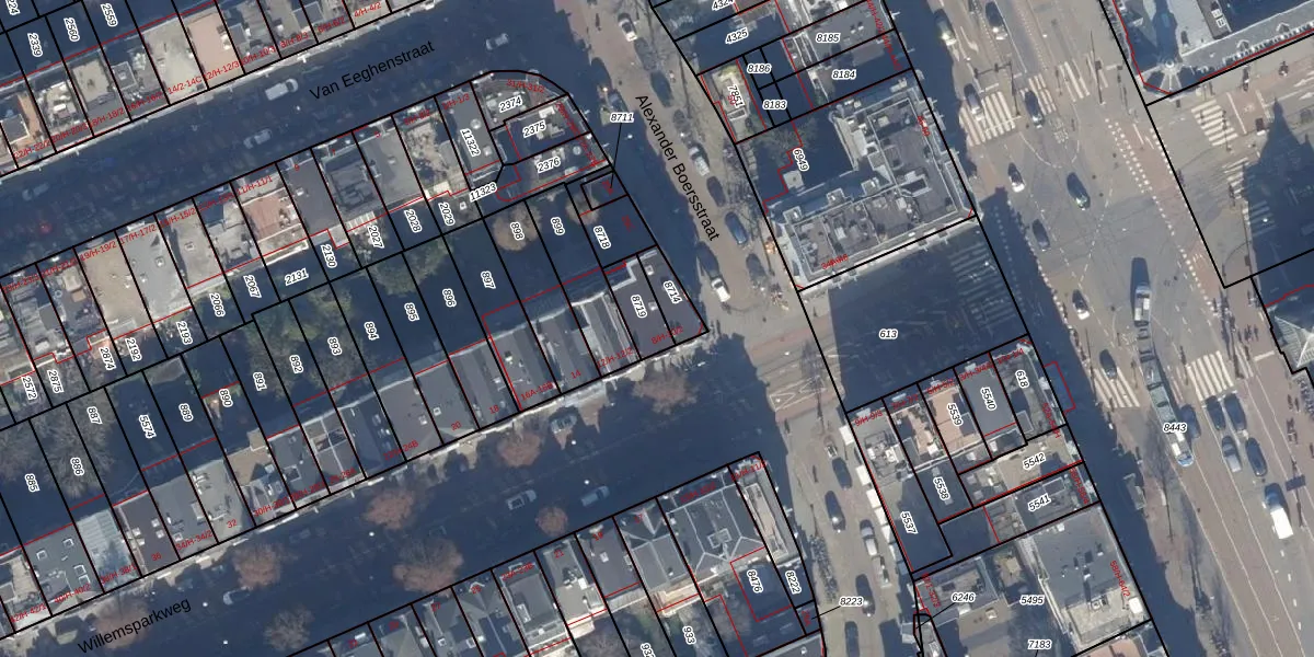 Het adres is gelegen op perceel 8719 in de sectie U en de kadastrale gemeente Amsterdam. De kadastrale aanduiding is aldus ASD17-U-8719. Het perceel is kleiner dan gemiddeld in Amsterdam. Het perceel is 92 m² groot, terwijl het gemiddelde ligt op 394,52 m². De grootste perceeloppervlakte in de kadastrale gemeente is 22,9 ha. De kleinste oppervlakte bedraagt 0 m². Er zijn 3 adressen aanwezig op het perceel. De huidige grenzen van het perceel zijn digitaal in de Basisregistratie Kadaster (BRK) geregistreerd op 08-12-2006.