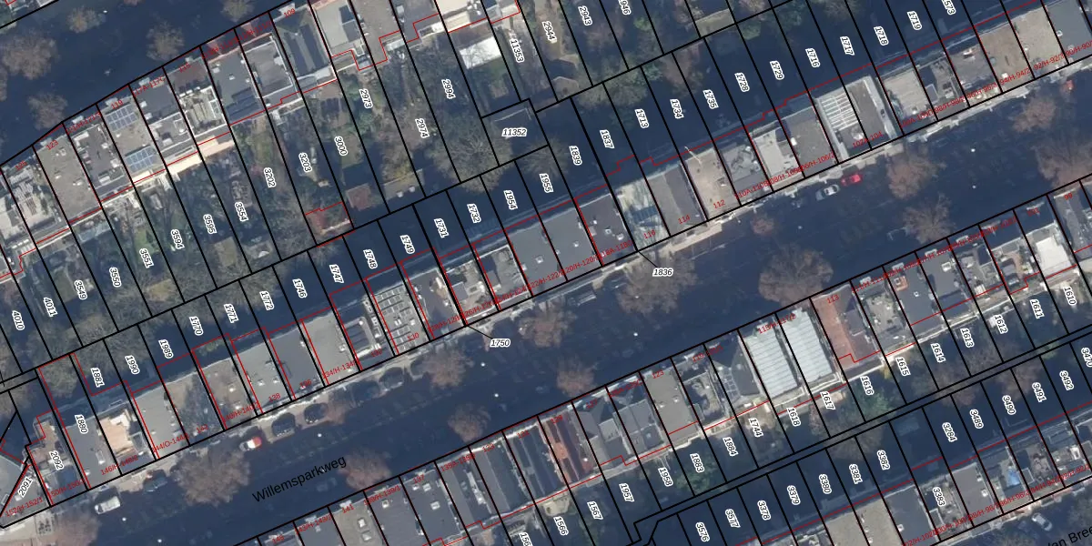 Het adres ligt op het perceel ASD17-U-1954, dat zich in de kadastrale gemeente Amsterdam bevindt. Het perceel is kleiner dan gemiddeld in Amsterdam. Het perceel is 172 m² groot, terwijl het gemiddelde ligt op 394,52 m². Het grootste perceel in de kadastrale gemeente is 22,9 ha. Het kleinste perceel heeft een oppervlakte van 0 m². Er zijn 2 adressen aanwezig op het perceel. De huidige grenzen van het perceel zijn digitaal in de Basisregistratie Kadaster (BRK) geregistreerd op 08-12-2006.