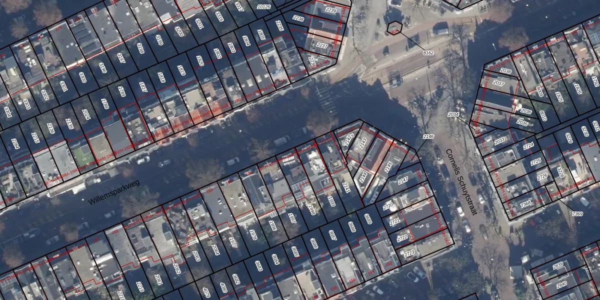 Het perceel waarop Willemsparkweg 183-A staat heeft een oppervlakte van 197 m². Dit is een middelgroot perceel. De perceeloppervlakte wordt geregistreerd door het Kadaster. Gedetailleerde informatie over de maten van dit perceel kunt u vinden in het rapport Kadastrale kaart met maatvoering van Willemsparkweg 183-A.
