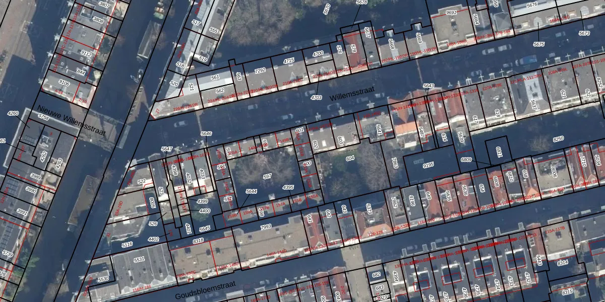 Het perceel waarop Willemsstraat 151-B staat heeft een oppervlakte van 62 m². Dit is een klein perceel. De perceeloppervlakte wordt geregistreerd door het Kadaster. Gedetailleerde informatie over de maten van dit perceel kunt u vinden in het rapport Kadastrale kaart met maatvoering van Willemsstraat 151-B.
