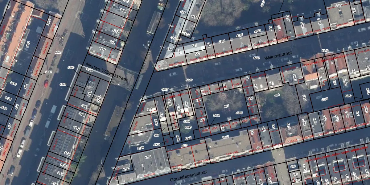 Het perceel waarop Willemsstraat 167-1 staat heeft een oppervlakte van 65 m². Dit is een klein perceel. De perceeloppervlakte wordt geregistreerd door het Kadaster. Gedetailleerde informatie over de maten van dit perceel kunt u vinden in het rapport Kadastrale kaart met maatvoering van Willemsstraat 167-1.