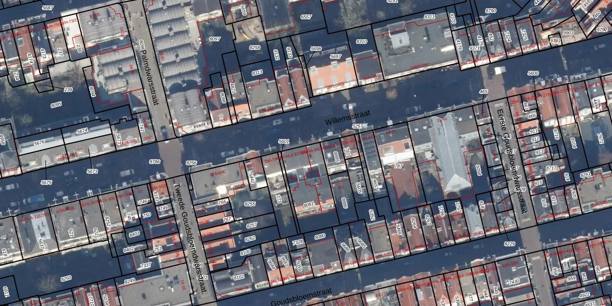 Het perceel waarop Willemsstraat 67-HLA staat heeft een oppervlakte van 371 m². Dit is een groot perceel. De perceeloppervlakte wordt geregistreerd door het Kadaster. Gedetailleerde informatie over de maten van dit perceel kunt u vinden in het rapport Kadastrale kaart met maatvoering van Willemsstraat 67-HLA.