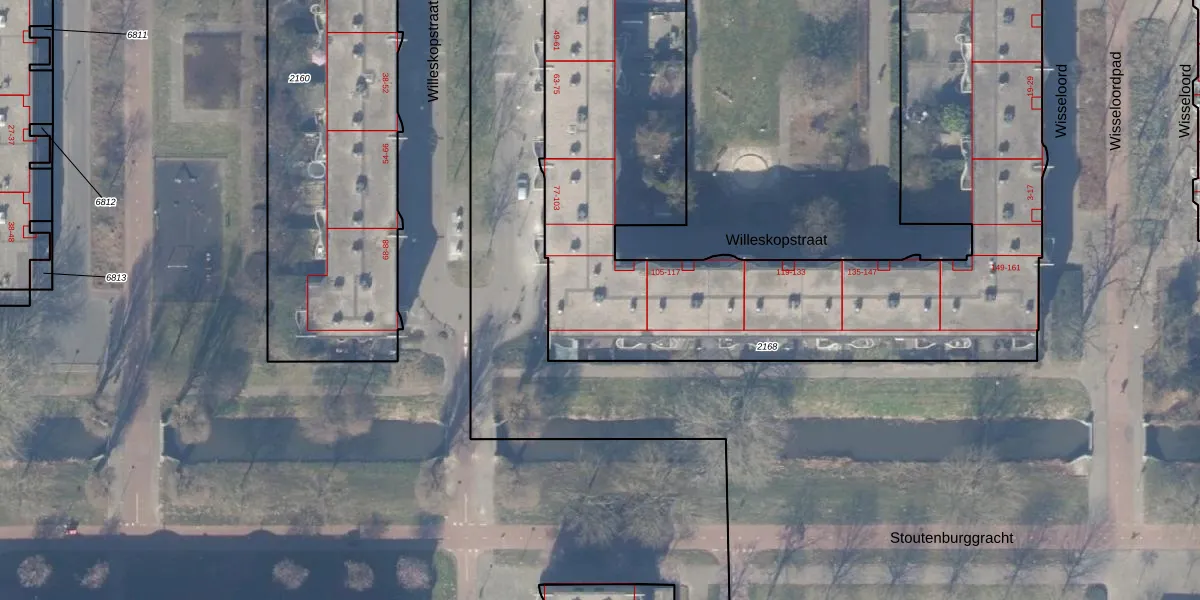 Willeskopstraat 97 is gelegen op kadastraal perceel WPK02L2168. Deze kadastrale aanduiding is uniek en wordt gebruikt door het Kadaster om eigendomsrechten en andere zakelijke rechten vast te leggen. Het perceel maakt onderdeel uit van de kadastrale gemeente Weesperkarspel.