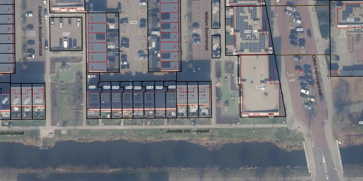 Gebruik de zoekbalk of klik op een perceel voor informatie over de adressen binnen dit perceel.