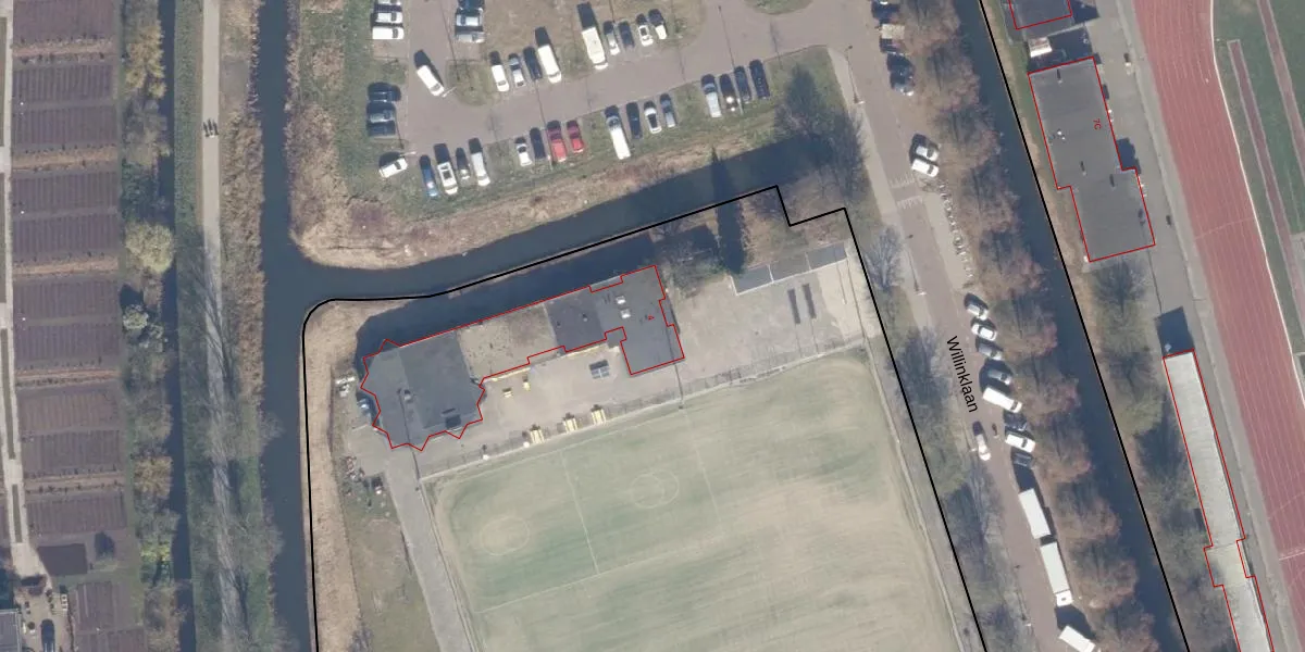 Het perceel waarop Willinklaan 4 staat heeft een oppervlakte van 1,6 ha. Dit is een zeer groot perceel. De perceeloppervlakte wordt geregistreerd door het Kadaster. Gedetailleerde informatie over de maten van dit perceel kunt u vinden in het rapport Kadastrale kaart met maatvoering van Willinklaan 4.