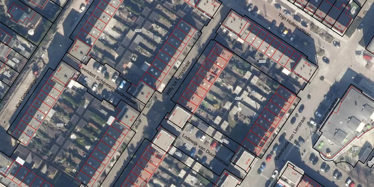 Willy La Croixstraat 49 is gelegen op kadastraal perceel STN02G4077. Deze kadastrale aanduiding is uniek en wordt gebruikt door het Kadaster om eigendomsrechten en andere zakelijke rechten vast te leggen. Het perceel maakt onderdeel uit van de kadastrale gemeente Sloten Noord-Holland.