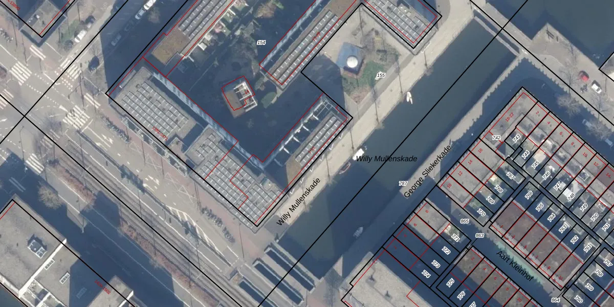 Willy Mullenskade 5 is gelegen op kadastraal perceel ASD41AU154. Deze kadastrale aanduiding is uniek en wordt gebruikt door het Kadaster om eigendomsrechten en andere zakelijke rechten vast te leggen. Het perceel maakt onderdeel uit van de kadastrale gemeente Amsterdam.