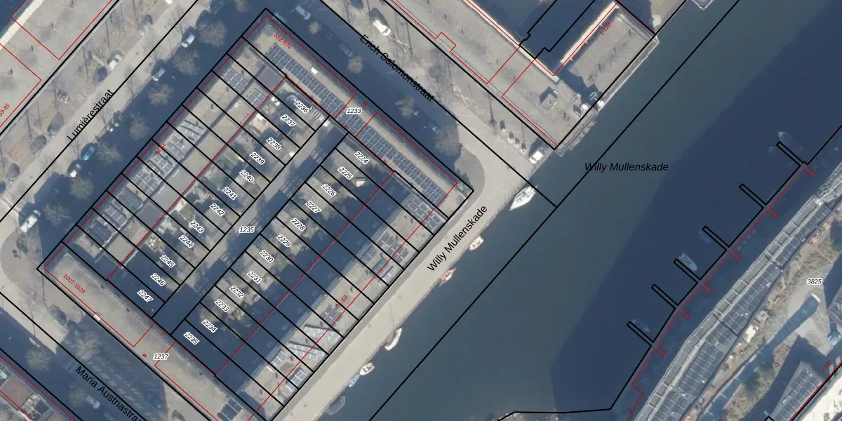 Het perceel waarop het adres ligt is ASD41-AU-2224. De afkorting 'ASD41' staat voor kadastrale gemeente Amsterdam. Het perceel is kleiner dan gemiddeld in Amsterdam. Het perceel is 165 m² groot, terwijl het gemiddelde ligt op 7292,22 m². De grootste perceeloppervlakte in de kadastrale gemeente is 2,75 km². De kleinste oppervlakte bedraagt 0 m². Op het perceel bevinden zich geen andere adressen. In de Basisregistratie Kadaster (BRK) werden de grenzen van het perceel geregistreerd op 02-11-2009.