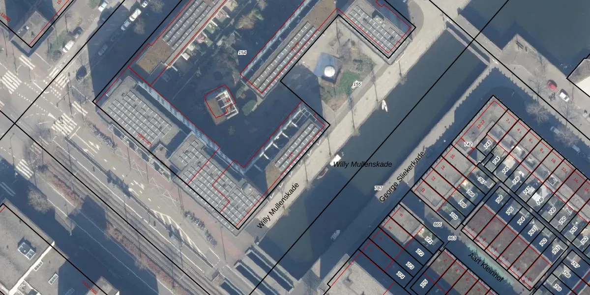 Het perceel waarop het adres ligt is ASD41-AU-154. De afkorting 'ASD41' staat voor kadastrale gemeente Amsterdam. De gemiddelde perceelgrootte in Amsterdam is 7296,83 m². Dit perceel is kleiner: de perceeloppervlakte bedraagt 5318 m². De grootste perceeloppervlakte in de kadastrale gemeente is 2,75 km². De kleinste oppervlakte bedraagt 0 m². Er zijn 95 adressen aanwezig op het perceel. De laatste wijziging in het de Basisregistratie Kadaster (BRK) was op 23-07-2002.
