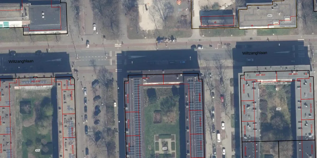 Wiltzanghlaan 43-2 is gelegen op kadastraal perceel STN02N299. Deze kadastrale aanduiding is uniek en wordt gebruikt door het Kadaster om eigendomsrechten en andere zakelijke rechten vast te leggen. Het perceel maakt onderdeel uit van de kadastrale gemeente Sloten Noord-Holland.