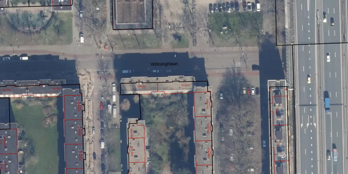 Het perceel waarop Wiltzanghlaan 61-H staat heeft een oppervlakte van 8627 m². Dit is een zeer groot perceel. De perceeloppervlakte wordt geregistreerd door het Kadaster. Gedetailleerde informatie over de maten van dit perceel kunt u vinden in het rapport Kadastrale kaart met maatvoering van Wiltzanghlaan 61-H.