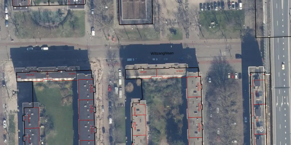 Het perceel waarop Wiltzanghlaan 63-3 staat heeft een oppervlakte van 8627 m². Dit is een zeer groot perceel. De perceeloppervlakte wordt geregistreerd door het Kadaster. Gedetailleerde informatie over de maten van dit perceel kunt u vinden in het rapport Kadastrale kaart met maatvoering van Wiltzanghlaan 63-3.