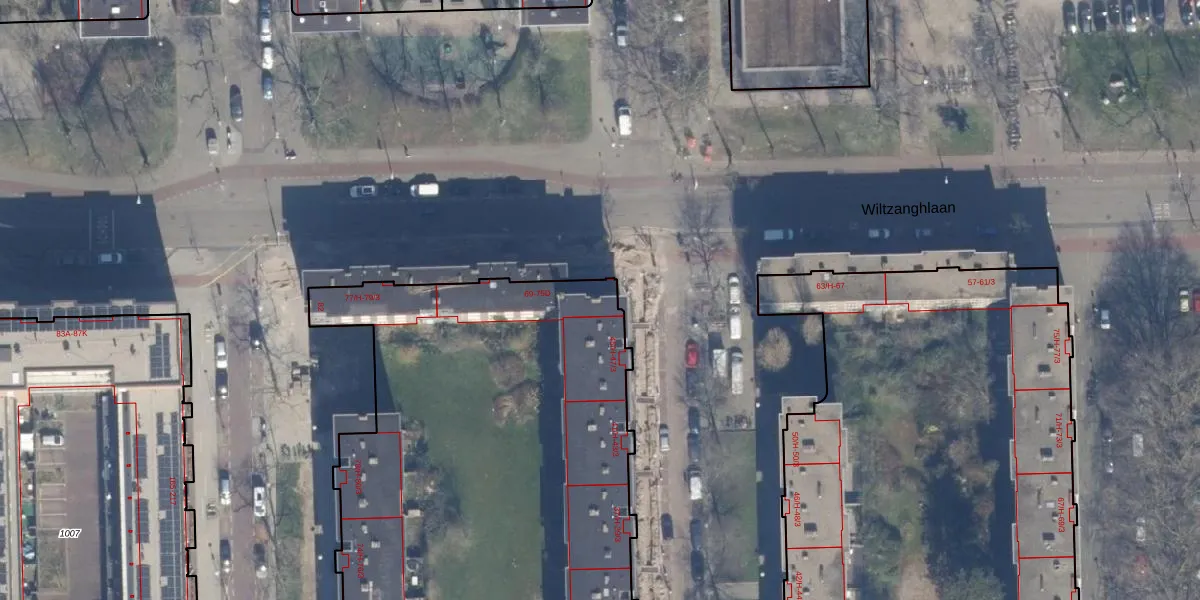 Het perceel waarop Wiltzanghlaan 69 staat heeft een oppervlakte van 7901 m². Dit is een zeer groot perceel. De perceeloppervlakte wordt geregistreerd door het Kadaster. Gedetailleerde informatie over de maten van dit perceel kunt u vinden in het rapport Kadastrale kaart met maatvoering van Wiltzanghlaan 69.