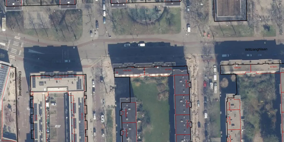 Het perceel waarop Wiltzanghlaan 77-1 staat heeft een oppervlakte van 7901 m². Dit is een zeer groot perceel. De perceeloppervlakte wordt geregistreerd door het Kadaster. Gedetailleerde informatie over de maten van dit perceel kunt u vinden in het rapport Kadastrale kaart met maatvoering van Wiltzanghlaan 77-1.