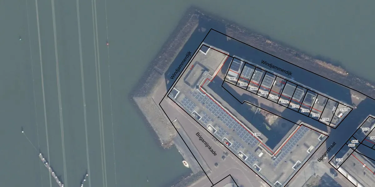 Het perceel waarop Windjammerdijk 2 staat heeft een oppervlakte van 2538 m². Dit is een zeer groot perceel. De perceeloppervlakte wordt geregistreerd door het Kadaster. Gedetailleerde informatie over de maten van dit perceel kunt u vinden in het rapport Kadastrale kaart met maatvoering van Windjammerdijk 2.