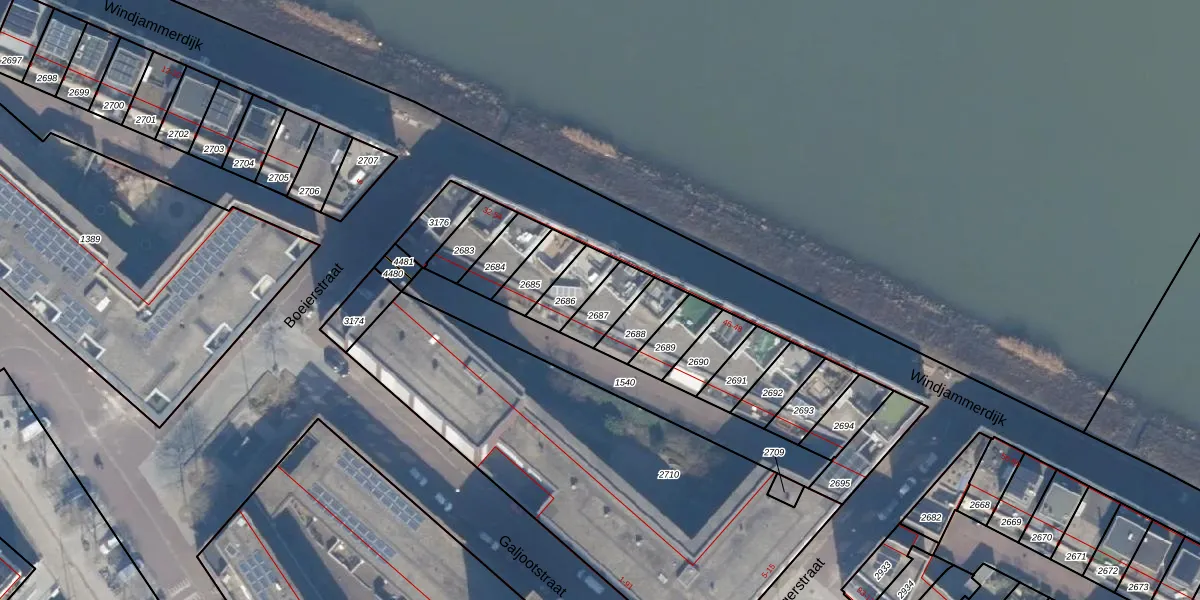 Het perceel waarop Windjammerdijk 36 staat heeft een oppervlakte van 95 m². Dit is een klein perceel. De perceeloppervlakte wordt geregistreerd door het Kadaster. Gedetailleerde informatie over de maten van dit perceel kunt u vinden in het rapport Kadastrale kaart met maatvoering van Windjammerdijk 36.