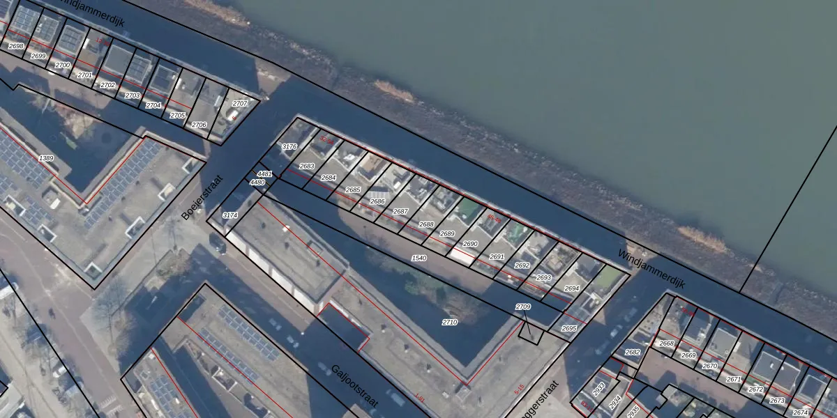 Het perceel waarop Windjammerdijk 38 staat heeft een oppervlakte van 95 m². Dit is een klein perceel. De perceeloppervlakte wordt geregistreerd door het Kadaster. Gedetailleerde informatie over de maten van dit perceel kunt u vinden in het rapport Kadastrale kaart met maatvoering van Windjammerdijk 38.
