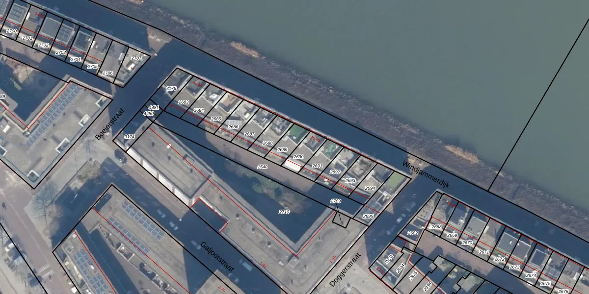 Het perceel waarop Windjammerdijk 44 staat heeft een oppervlakte van 94 m². Dit is een klein perceel. De perceeloppervlakte wordt geregistreerd door het Kadaster. Gedetailleerde informatie over de maten van dit perceel kunt u vinden in het rapport Kadastrale kaart met maatvoering van Windjammerdijk 44.