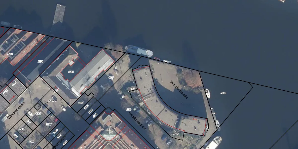 Windrooskade 2 is gelegen op kadastraal perceel ASD10N4198. Deze kadastrale aanduiding is uniek en wordt gebruikt door het Kadaster om eigendomsrechten en andere zakelijke rechten vast te leggen. Het perceel maakt onderdeel uit van de kadastrale gemeente Amsterdam.