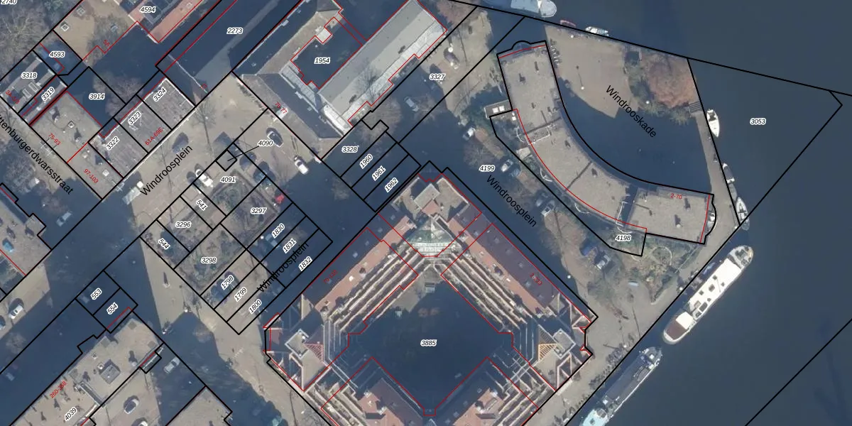 Het perceel waarop Windroosplein 182 staat heeft een oppervlakte van 3613 m². Dit is een zeer groot perceel. De perceeloppervlakte wordt geregistreerd door het Kadaster. Gedetailleerde informatie over de maten van dit perceel kunt u vinden in het rapport Kadastrale kaart met maatvoering van Windroosplein 182.