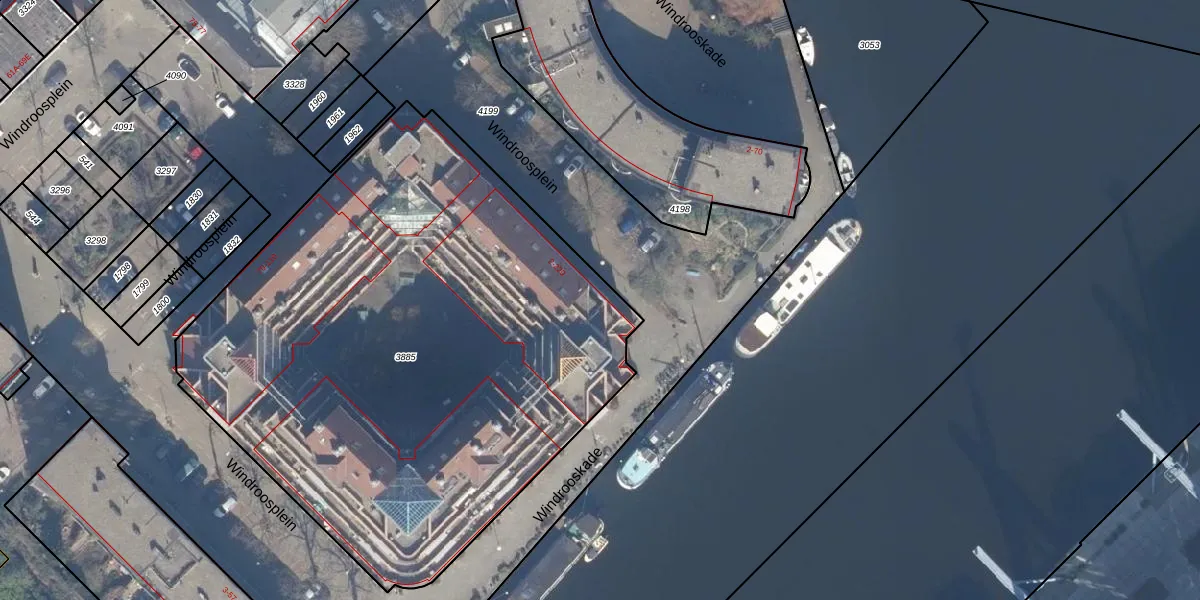 Het perceel waarop Windroosplein 218 staat heeft een oppervlakte van 3613 m². Dit is een zeer groot perceel. De perceeloppervlakte wordt geregistreerd door het Kadaster. Gedetailleerde informatie over de maten van dit perceel kunt u vinden in het rapport Kadastrale kaart met maatvoering van Windroosplein 218.