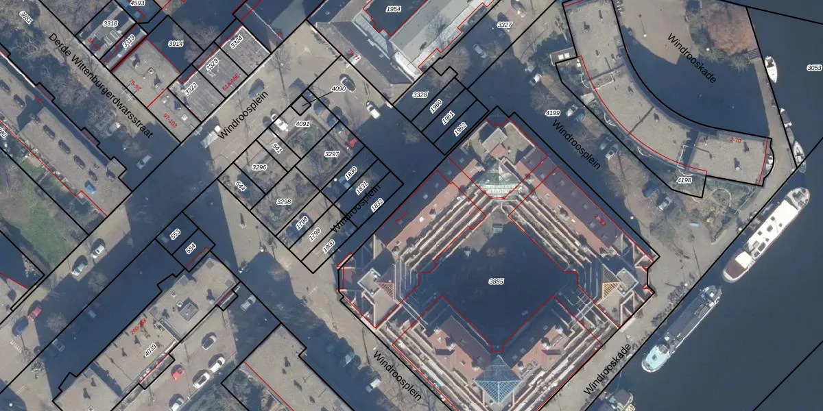 Windroosplein 96 is gelegen op kadastraal perceel ASD10N3885. Deze kadastrale aanduiding is uniek en wordt gebruikt door het Kadaster om eigendomsrechten en andere zakelijke rechten vast te leggen. Het perceel maakt onderdeel uit van de kadastrale gemeente Amsterdam.