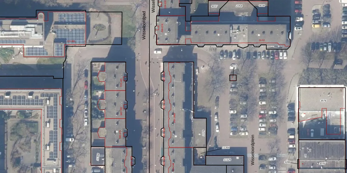 Het perceel waarop Wisseloord 182 staat heeft een oppervlakte van 2000 m². Dit is een zeer groot perceel. De perceeloppervlakte wordt geregistreerd door het Kadaster. Gedetailleerde informatie over de maten van dit perceel kunt u vinden in het rapport Kadastrale kaart met maatvoering van Wisseloord 182.
