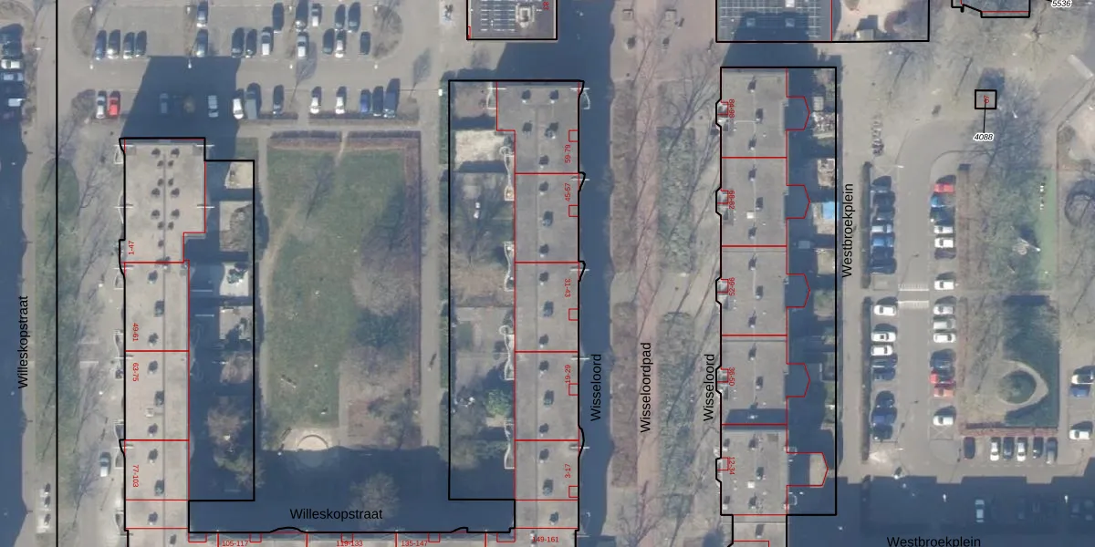 Het perceel waarop Wisseloord 43 staat heeft een oppervlakte van 4865 m². Dit is een zeer groot perceel. De perceeloppervlakte wordt geregistreerd door het Kadaster. Gedetailleerde informatie over de maten van dit perceel kunt u vinden in het rapport Kadastrale kaart met maatvoering van Wisseloord 43.