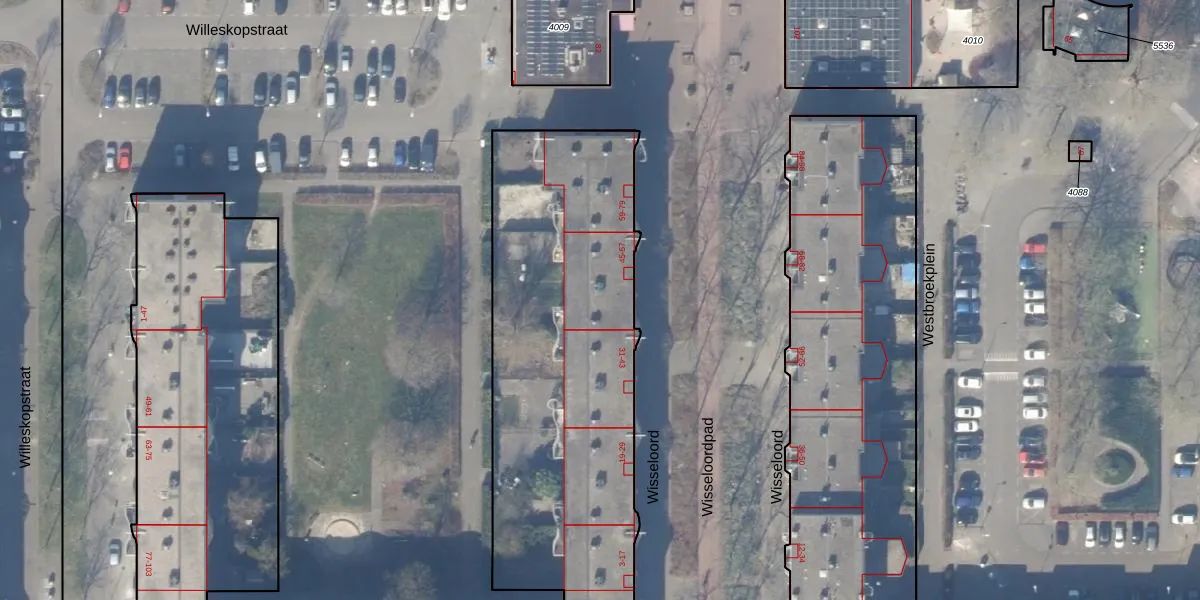 Het perceel waarop Wisseloord 49 staat heeft een oppervlakte van 4865 m². Dit is een zeer groot perceel. De perceeloppervlakte wordt geregistreerd door het Kadaster. Gedetailleerde informatie over de maten van dit perceel kunt u vinden in het rapport Kadastrale kaart met maatvoering van Wisseloord 49.