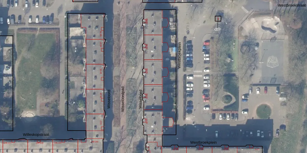 Het perceel waarop Wisseloord 56 staat heeft een oppervlakte van 3515 m². Dit is een zeer groot perceel. De perceeloppervlakte wordt geregistreerd door het Kadaster. Gedetailleerde informatie over de maten van dit perceel kunt u vinden in het rapport Kadastrale kaart met maatvoering van Wisseloord 56.