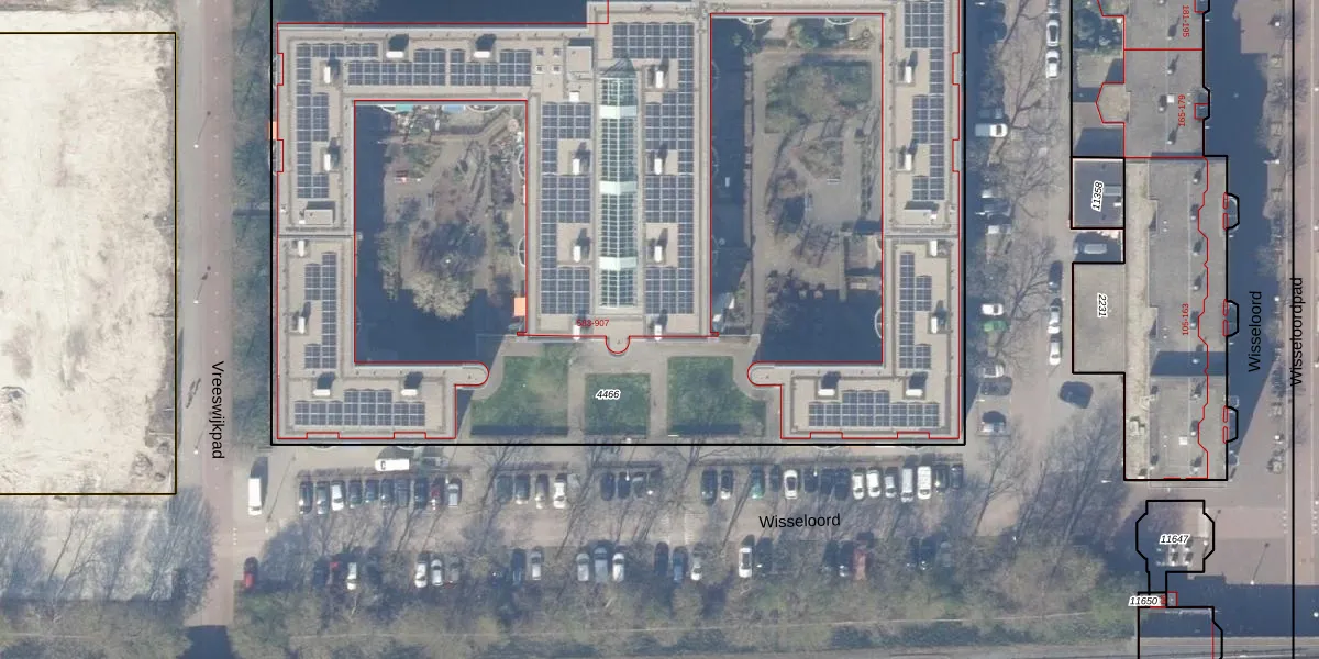 Het perceel waarop Wisseloord 867 staat heeft een oppervlakte van 8185 m². Dit is een zeer groot perceel. De perceeloppervlakte wordt geregistreerd door het Kadaster. Gedetailleerde informatie over de maten van dit perceel kunt u vinden in het rapport Kadastrale kaart met maatvoering van Wisseloord 867.