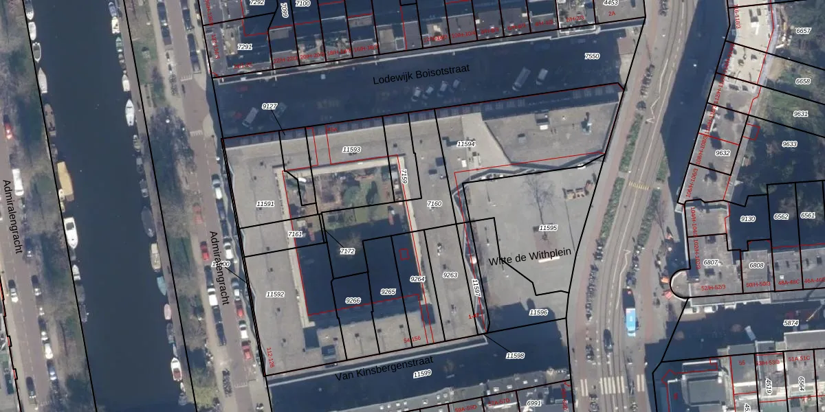 Het perceel waarop Witte de Withplein 43 staat heeft een oppervlakte van 440 m². Dit is een groot perceel. De perceeloppervlakte wordt geregistreerd door het Kadaster. Gedetailleerde informatie over de maten van dit perceel kunt u vinden in het rapport Kadastrale kaart met maatvoering van Witte de Withplein 43.