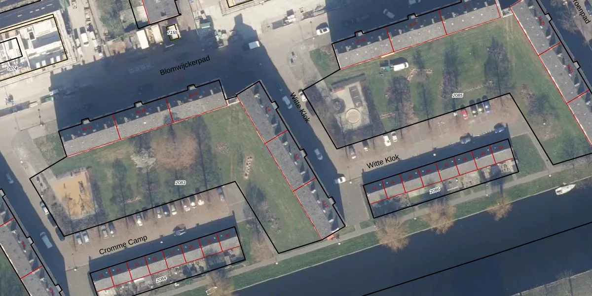 Het perceel waarop Witte Klok 6-H staat heeft een oppervlakte van 3382 m². Dit is een zeer groot perceel. De perceeloppervlakte wordt geregistreerd door het Kadaster. Gedetailleerde informatie over de maten van dit perceel kunt u vinden in het rapport Kadastrale kaart met maatvoering van Witte Klok 6-H.