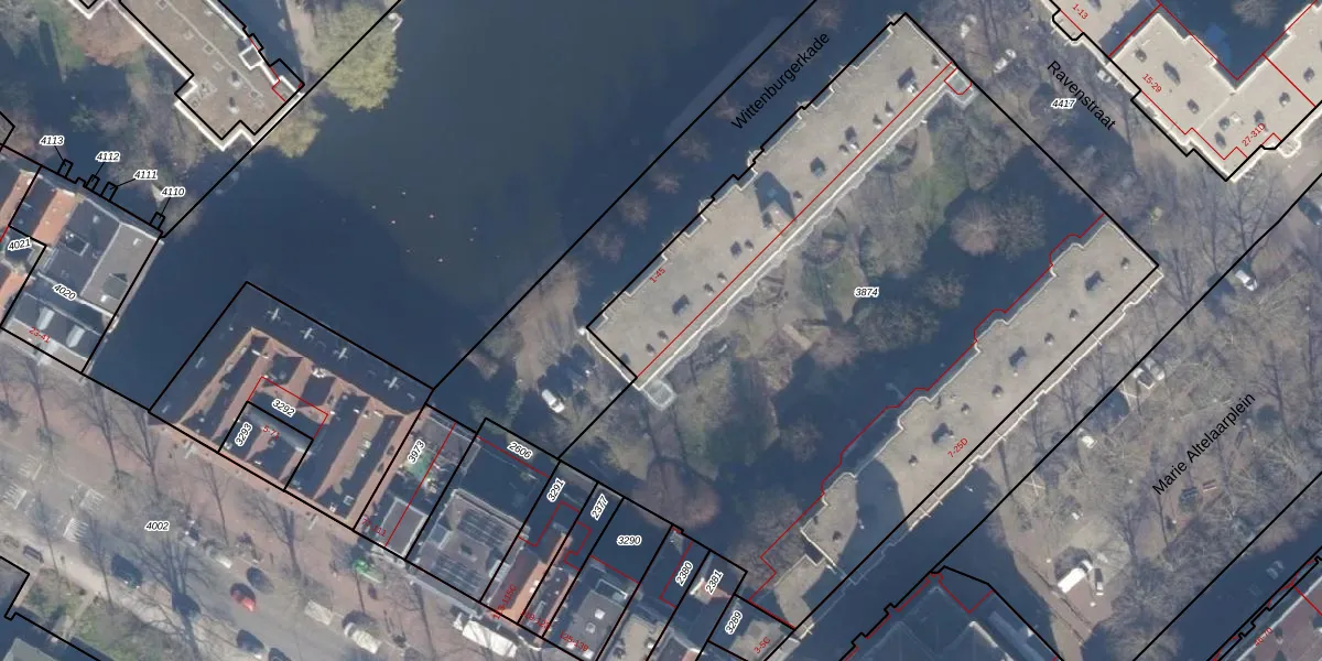 Het perceel waarop Wittenburgerkade 11 staat heeft een oppervlakte van 4258 m². Dit is een zeer groot perceel. De perceeloppervlakte wordt geregistreerd door het Kadaster. Gedetailleerde informatie over de maten van dit perceel kunt u vinden in het rapport Kadastrale kaart met maatvoering van Wittenburgerkade 11.