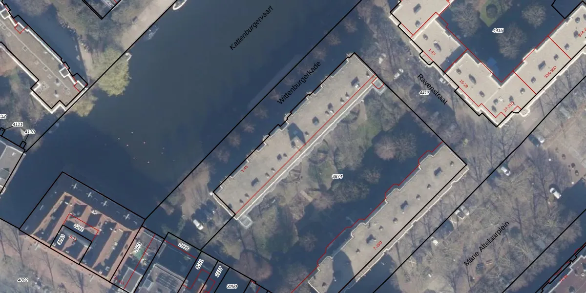 Het perceel waarop Wittenburgerkade 25 staat heeft een oppervlakte van 4258 m². Dit is een zeer groot perceel. De perceeloppervlakte wordt geregistreerd door het Kadaster. Gedetailleerde informatie over de maten van dit perceel kunt u vinden in het rapport Kadastrale kaart met maatvoering van Wittenburgerkade 25.