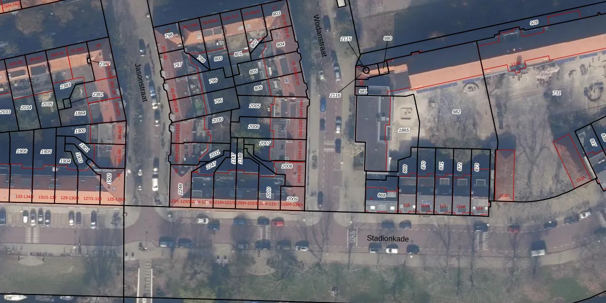 Het adres ligt op het perceel ASD23-AB-2007, dat zich in de kadastrale gemeente Amsterdam bevindt. Het perceel is 126 m² groot. Dat is kleiner dan de gemiddelde perceeloppervlakte in Amsterdam, dat op 1139,27 m² ligt. Het grootste perceel in de kadastrale gemeente is 28,7 ha. Het kleinste perceel heeft een oppervlakte van 0 m². Op het perceel zijn 4 adressen aanwezig. De huidige grenzen van het perceel zijn digitaal in de Basisregistratie Kadaster (BRK) geregistreerd op 15-09-2006.
