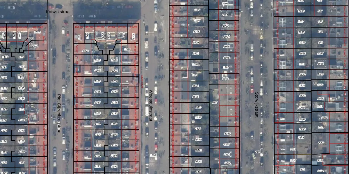 Woestduinstraat 121-H is gelegen op kadastraal perceel STN02O1594. Deze kadastrale aanduiding is uniek en wordt gebruikt door het Kadaster om eigendomsrechten en andere zakelijke rechten vast te leggen. Het perceel maakt onderdeel uit van de kadastrale gemeente Sloten Noord-Holland.