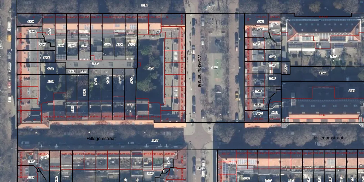 Het perceel waarop Woestduinstraat 70-H staat heeft een oppervlakte van 1581 m². Dit is een zeer groot perceel. De perceeloppervlakte wordt geregistreerd door het Kadaster. Gedetailleerde informatie over de maten van dit perceel kunt u vinden in het rapport Kadastrale kaart met maatvoering van Woestduinstraat 70-H.