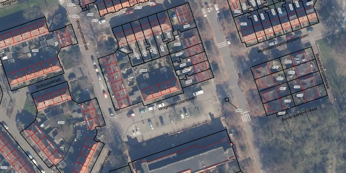 Het perceel waarop Wognumerplantsoen 7 staat heeft een oppervlakte van 1100 m². Dit is een zeer groot perceel. De perceeloppervlakte wordt geregistreerd door het Kadaster. Gedetailleerde informatie over de maten van dit perceel kunt u vinden in het rapport Kadastrale kaart met maatvoering van Wognumerplantsoen 7.